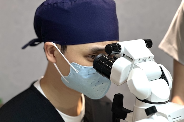 醫師透過高倍率牙科顯微鏡來精準修磨牙齒表面,以確保貼片與牙齒密合,並減少對牙齒的傷害。
