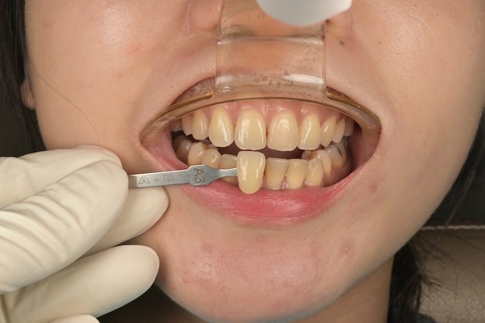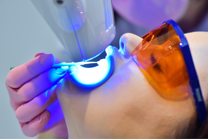 在牙科診所進行的冷光美白技術,使用高濃度的美白劑,並透過特殊光源加速其作用,約30分鐘即可見效。此方法能迅速提升牙齒亮度,效果持久。