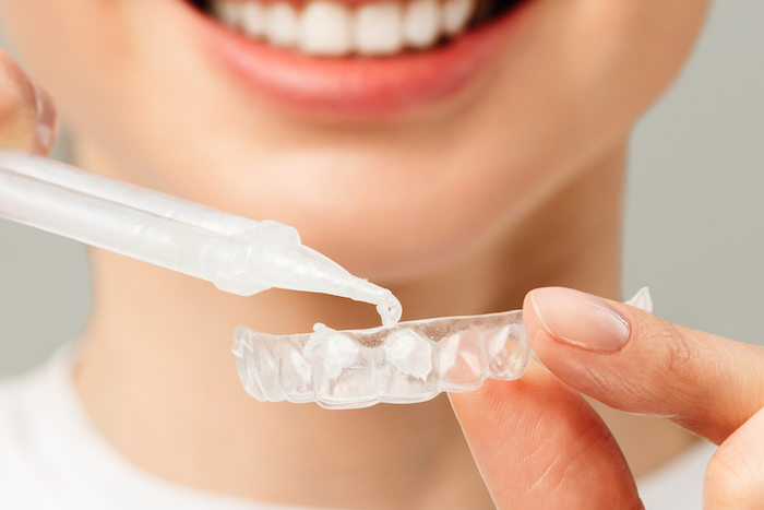 由牙醫師製作專屬的美白牙托,患者在家中自行使用低濃度的美白劑,每次配戴約30分鐘,持續約2週。此方法方便且漸進,適合希望自行控制美白進度的人士。